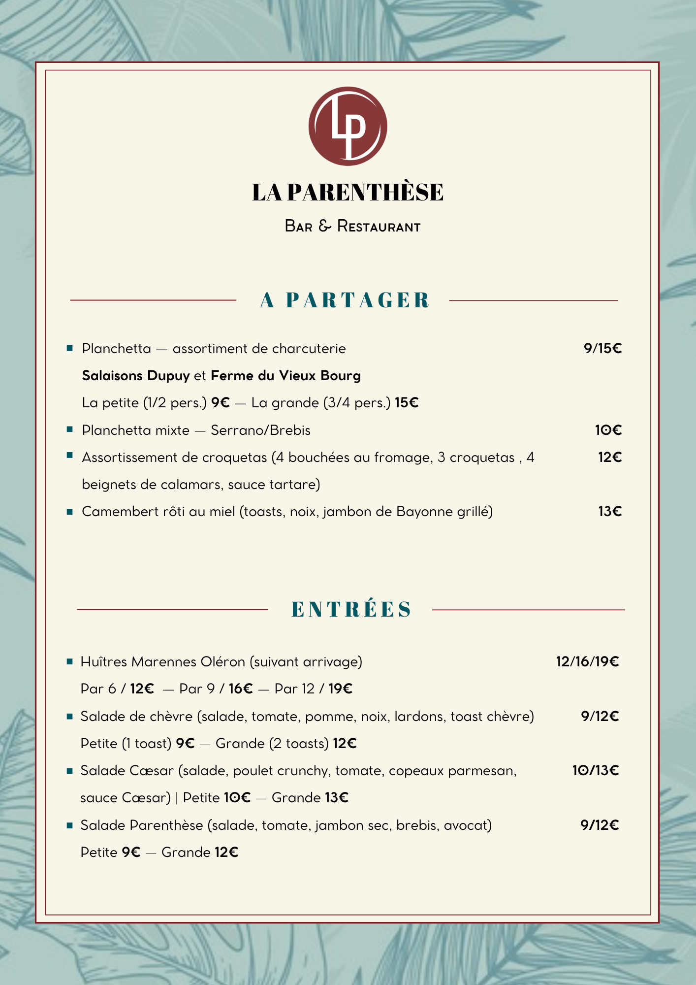 Si vous voulez manger un repas français et recherchez un établissement où passer la soirée, vous êtes les bienvenus chez nous. Nous vous encourageons à visiter notre magnifique terrasse lorsqu’il fait beau.